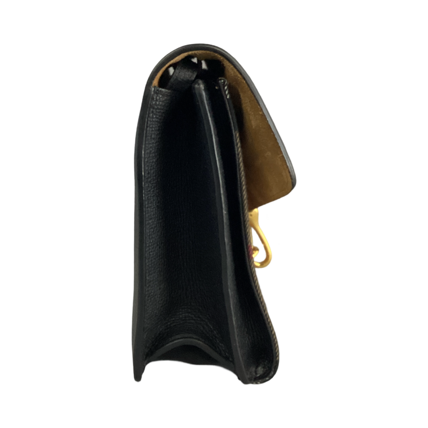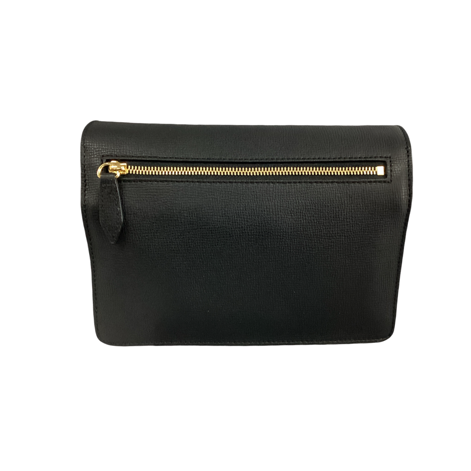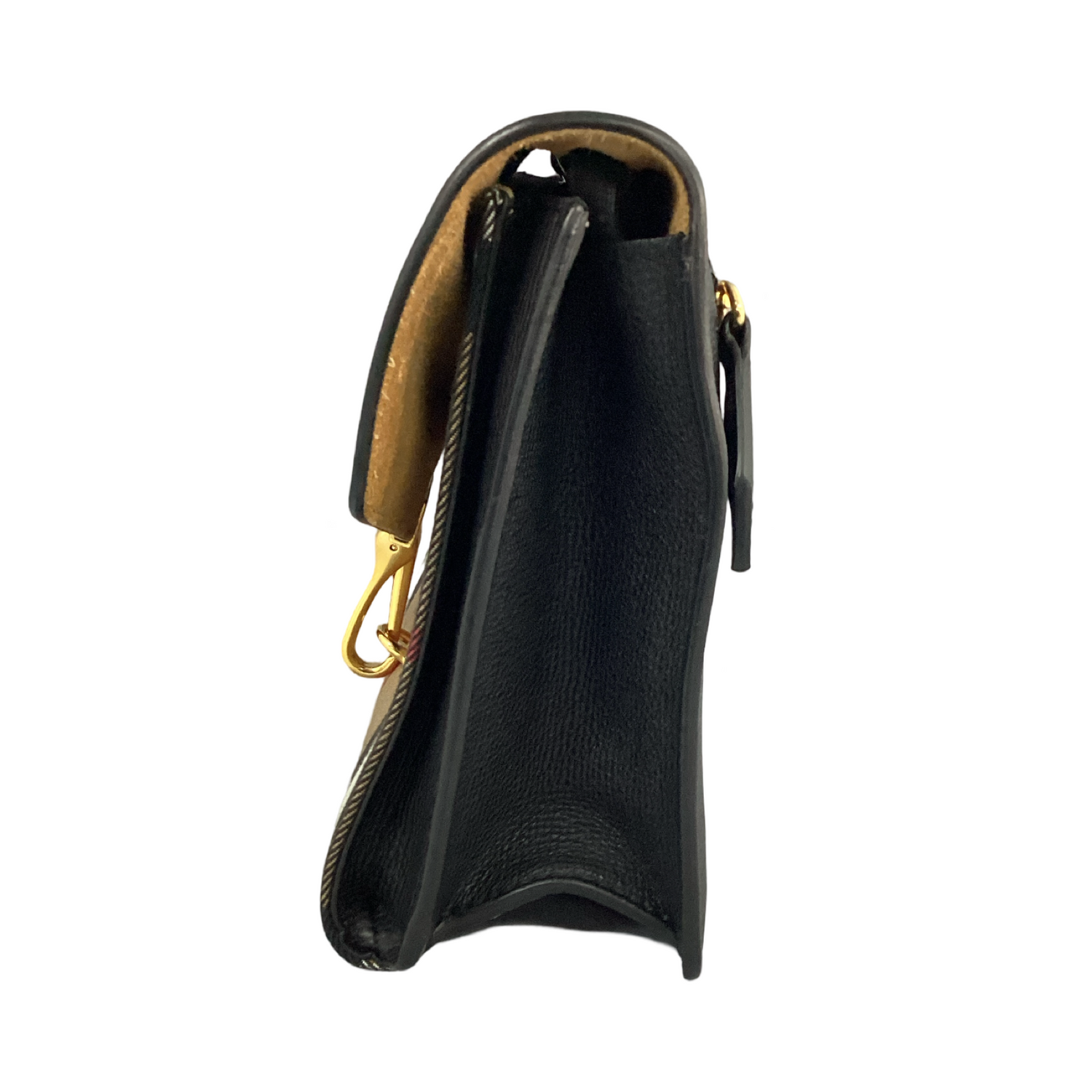 Burberry-Black and Canvas Macken Small Crossbody with gold-toned hardware, made of canvas and leather, detachable and adjustable leather strap, hook clasp closure. Interior features suede, fabric and leather interior, 2 compartments and a slip pocket.