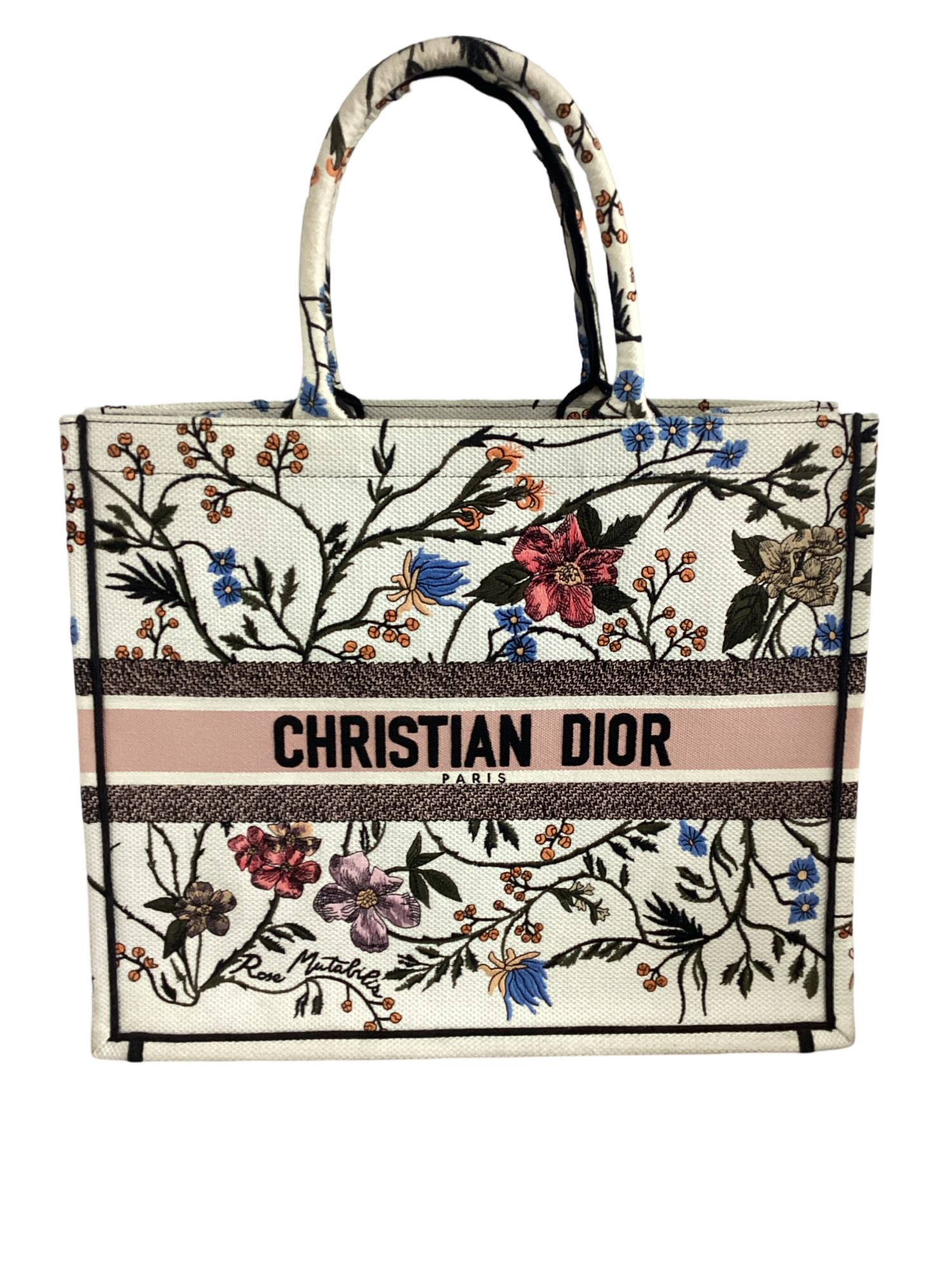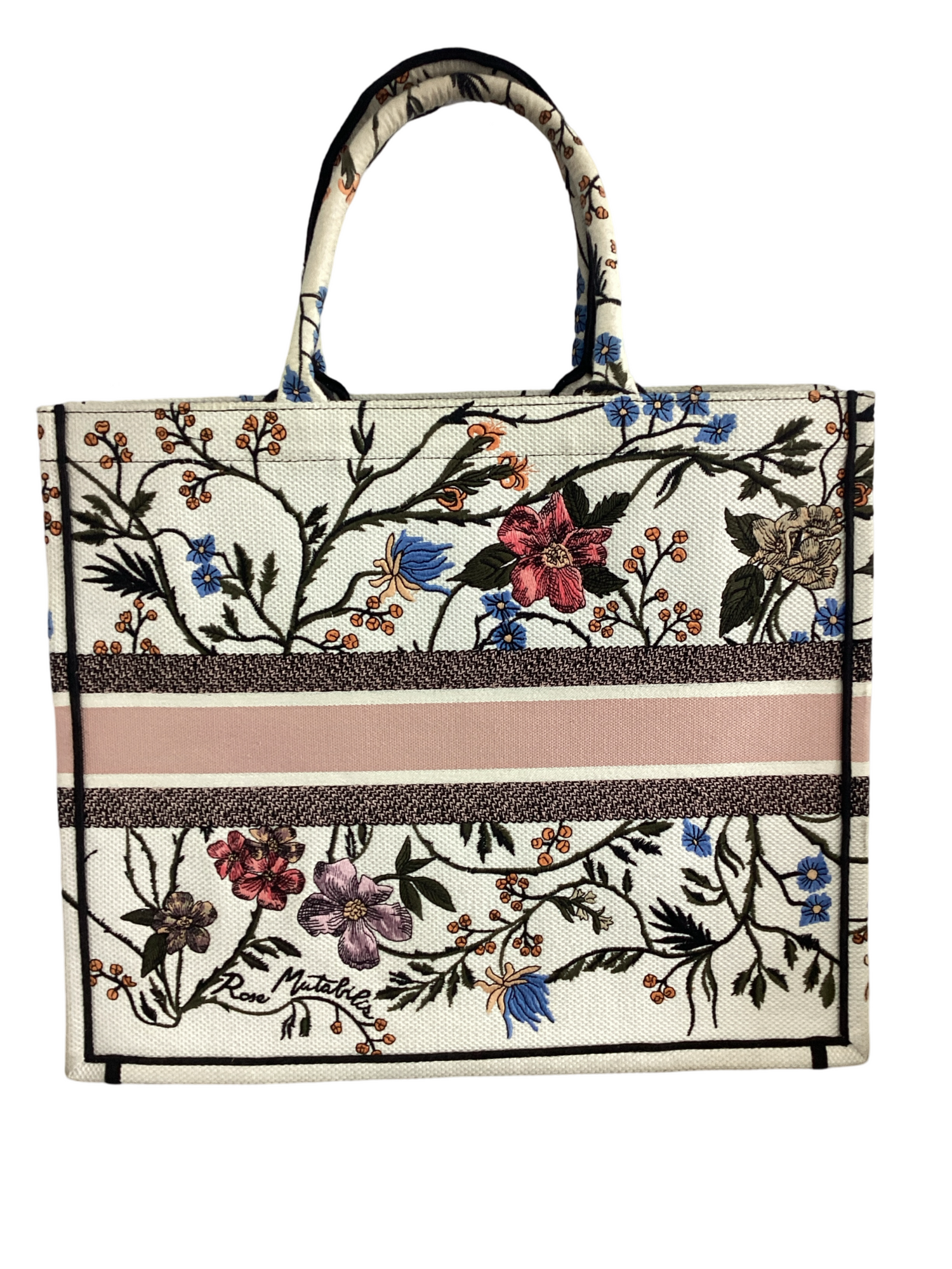 Christian Dior Floral Embroidered Canvas Book Tote