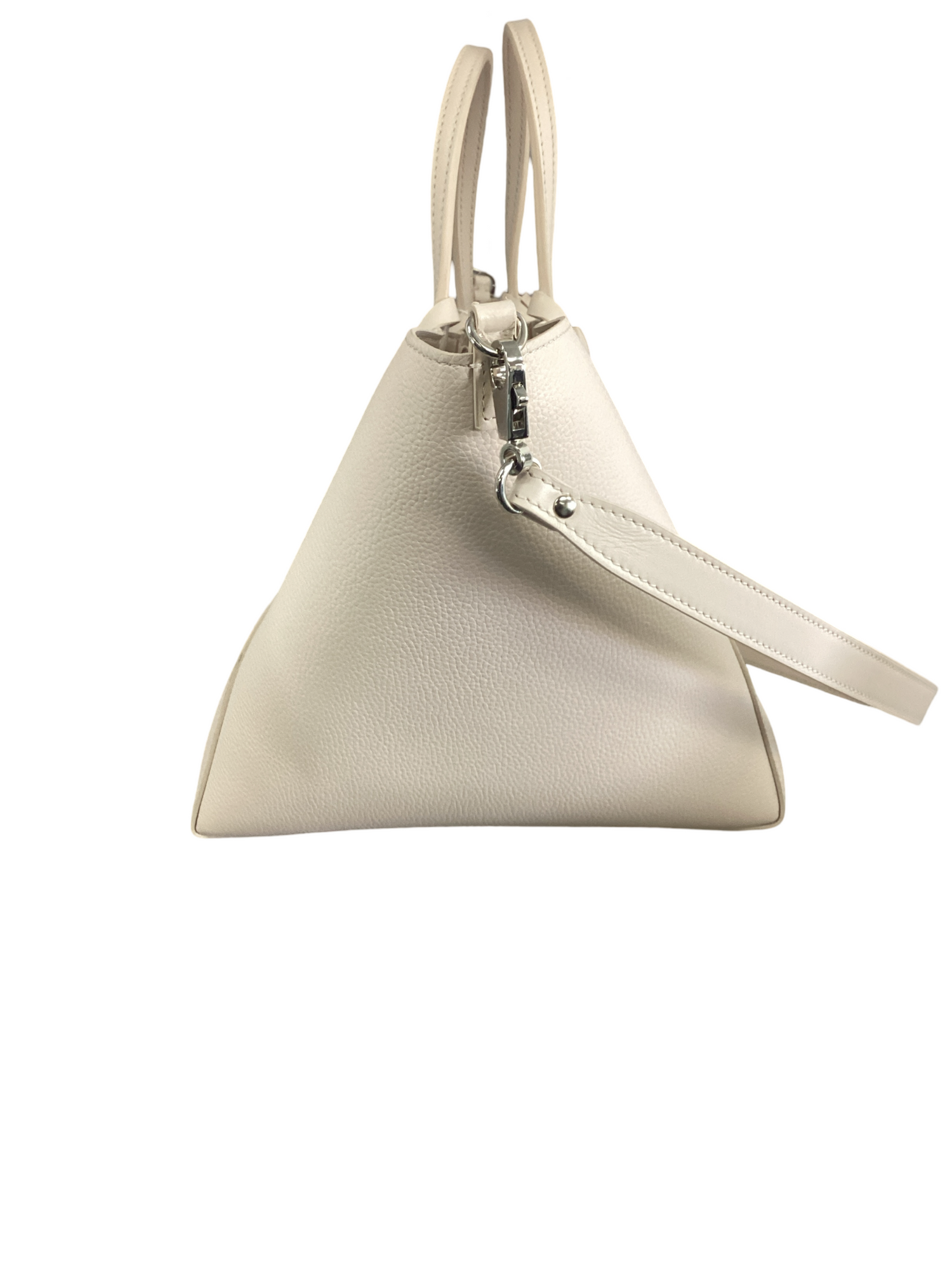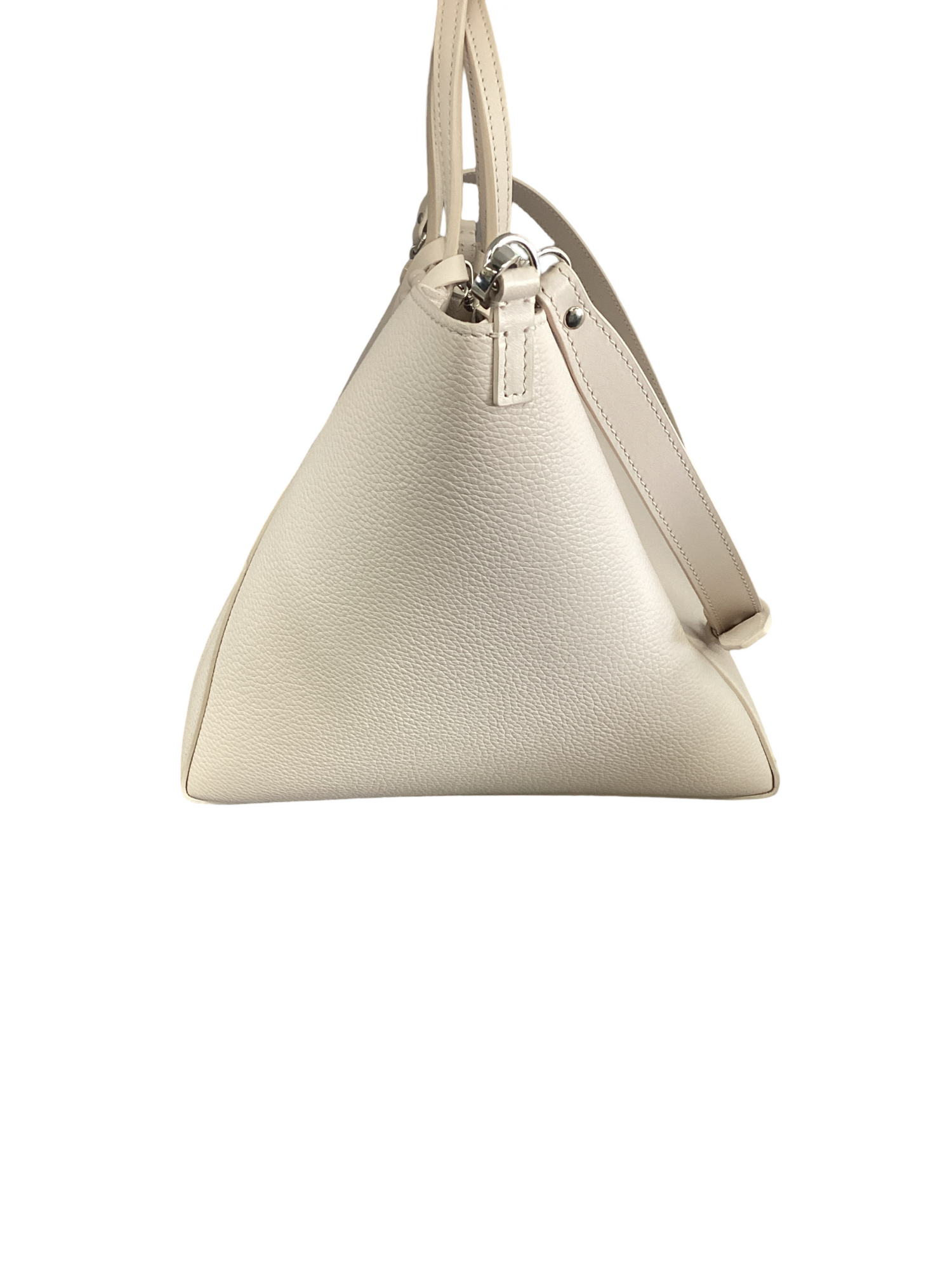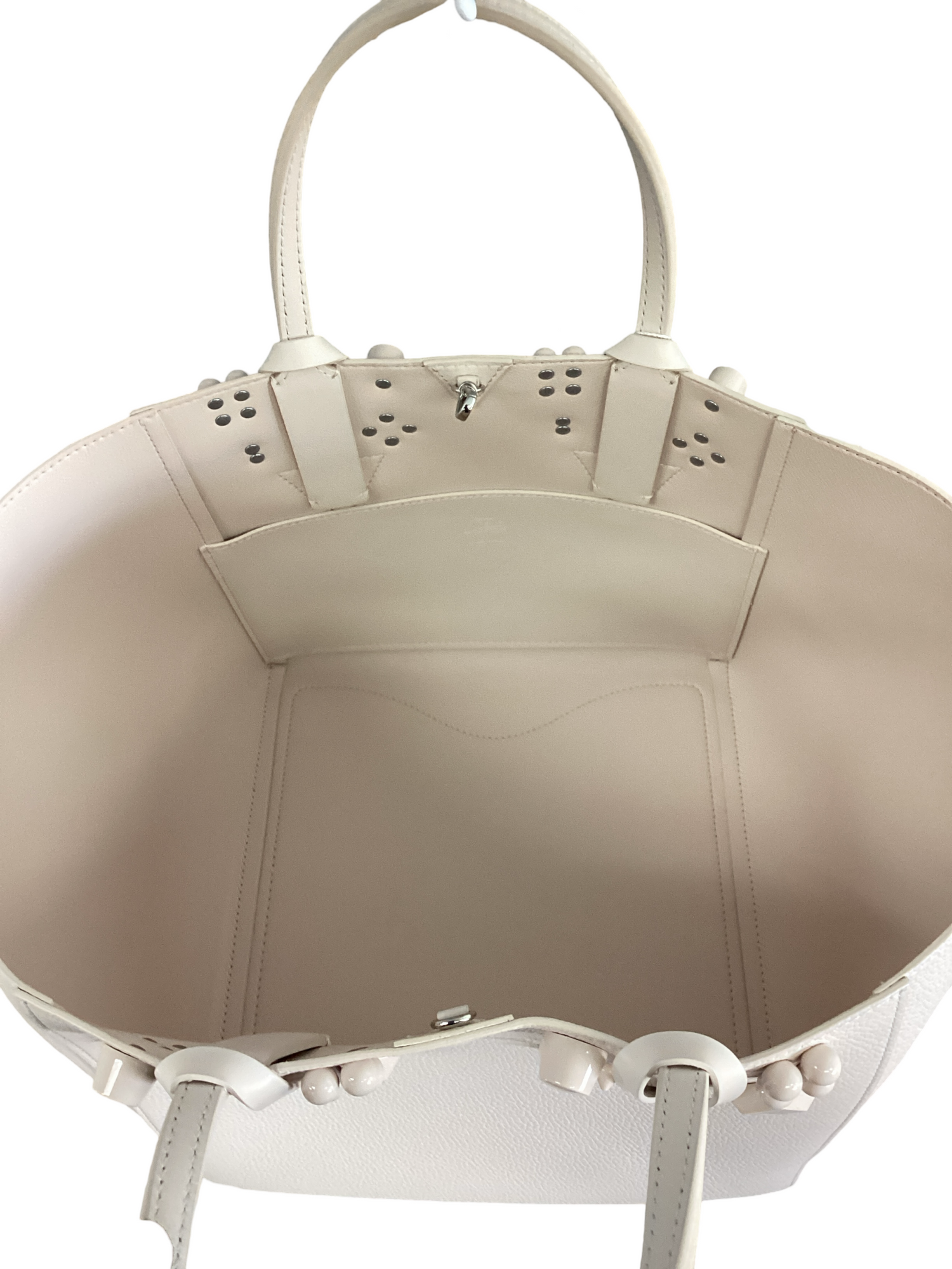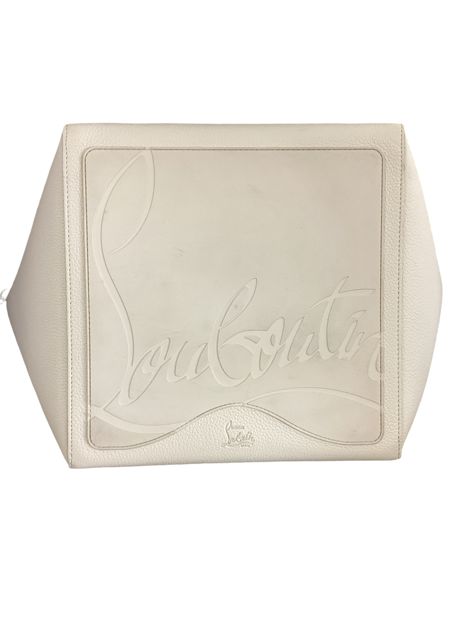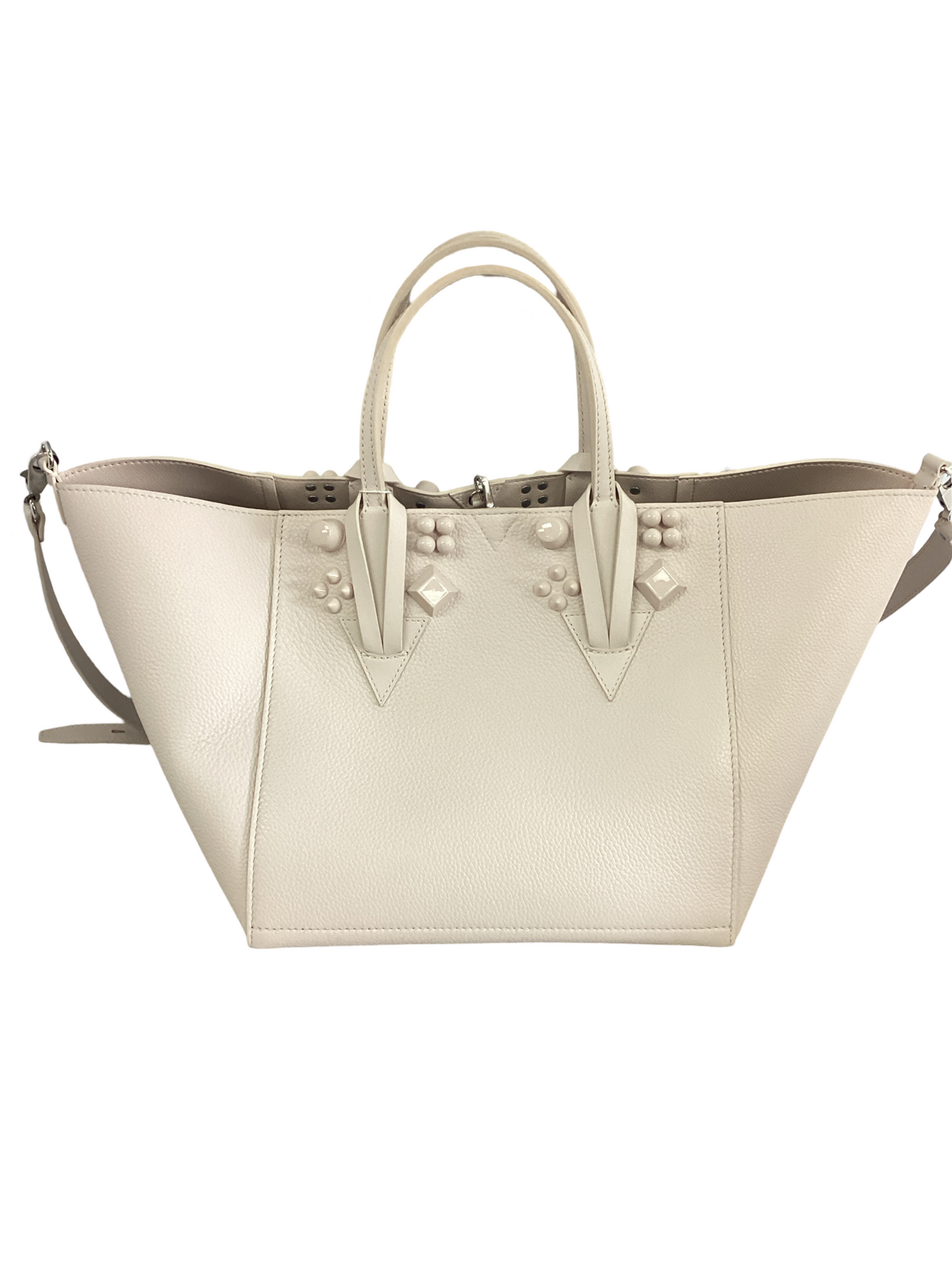 Christian Louboutin Leather Cabachic Handle Bag with silver-tone hardware, two top handles and detachable adjustable long strap and clip closure. Interior features leather lining and a slip pocket.