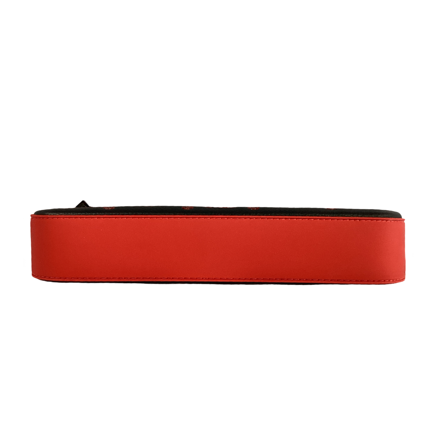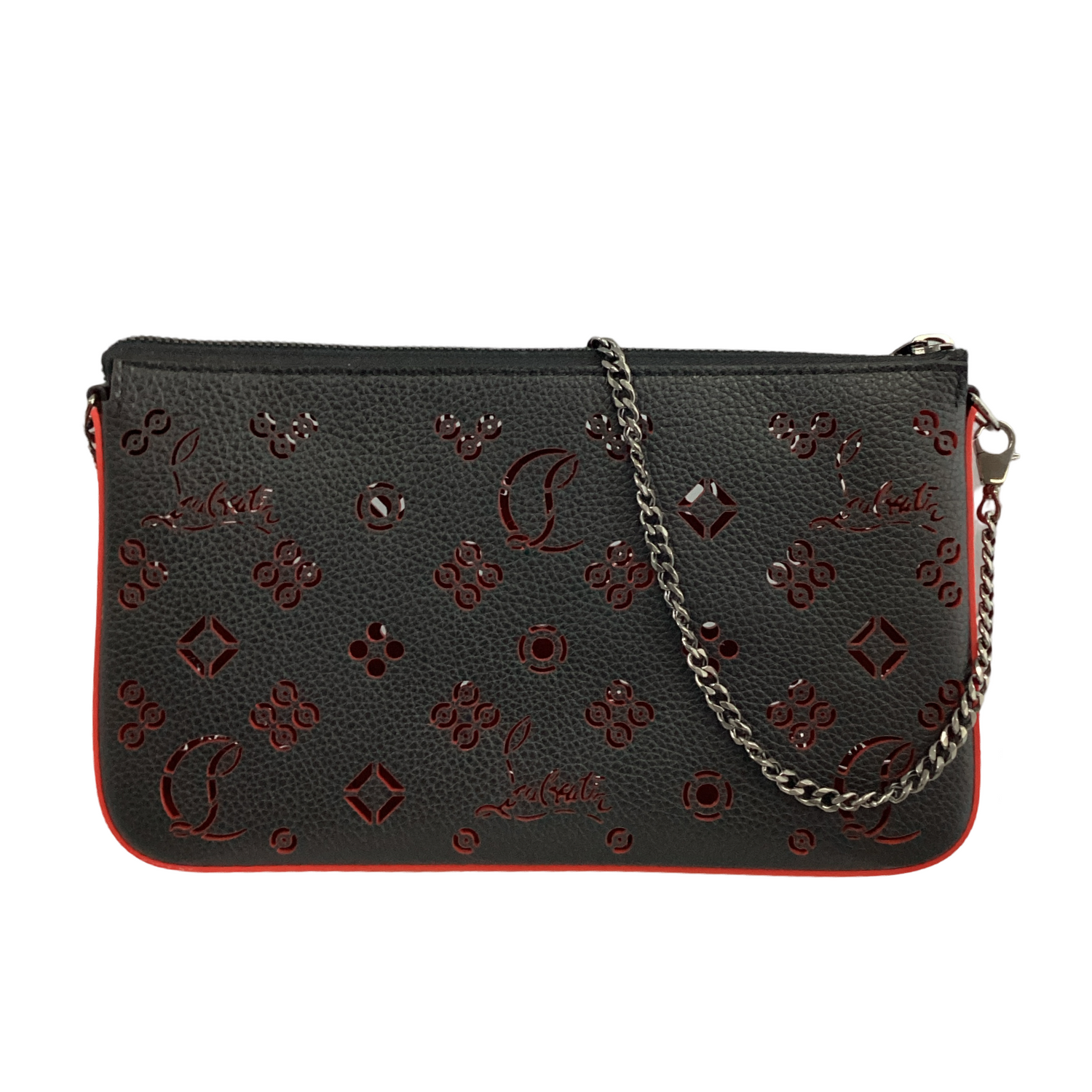 Christian Louboutin-Perforated Loubila Bag, with gun-metal toned hardware, black perforated calfskin leather with the signature red accent leather, top zipper closure. Interior features a red leather lining.