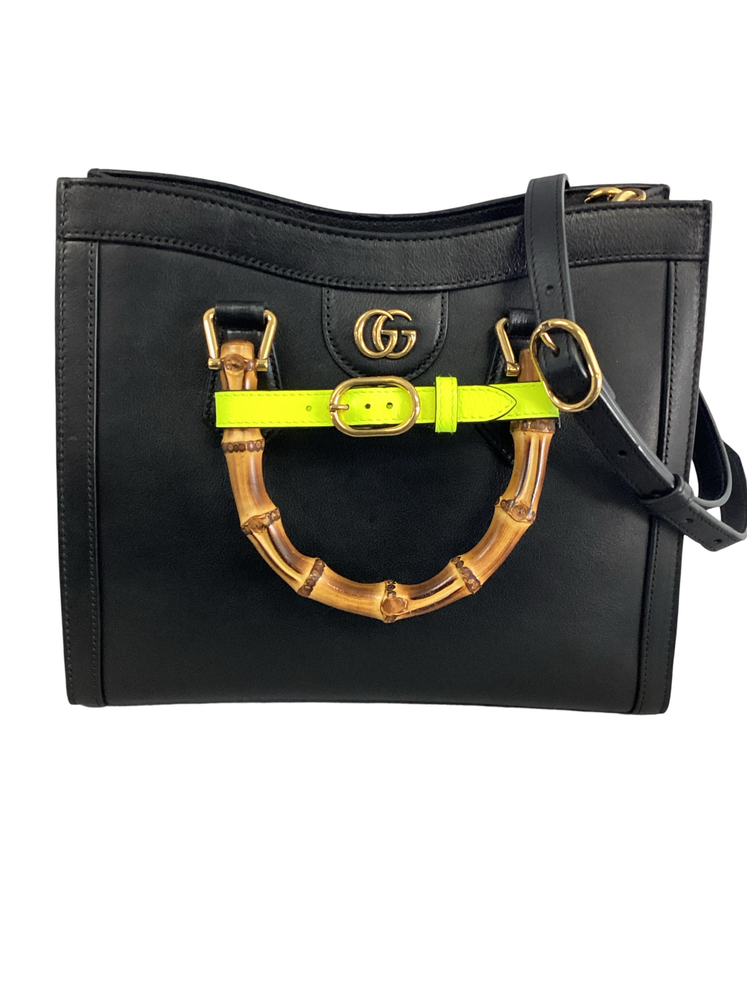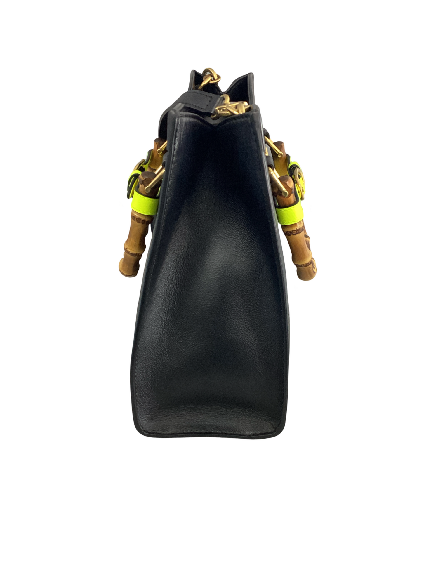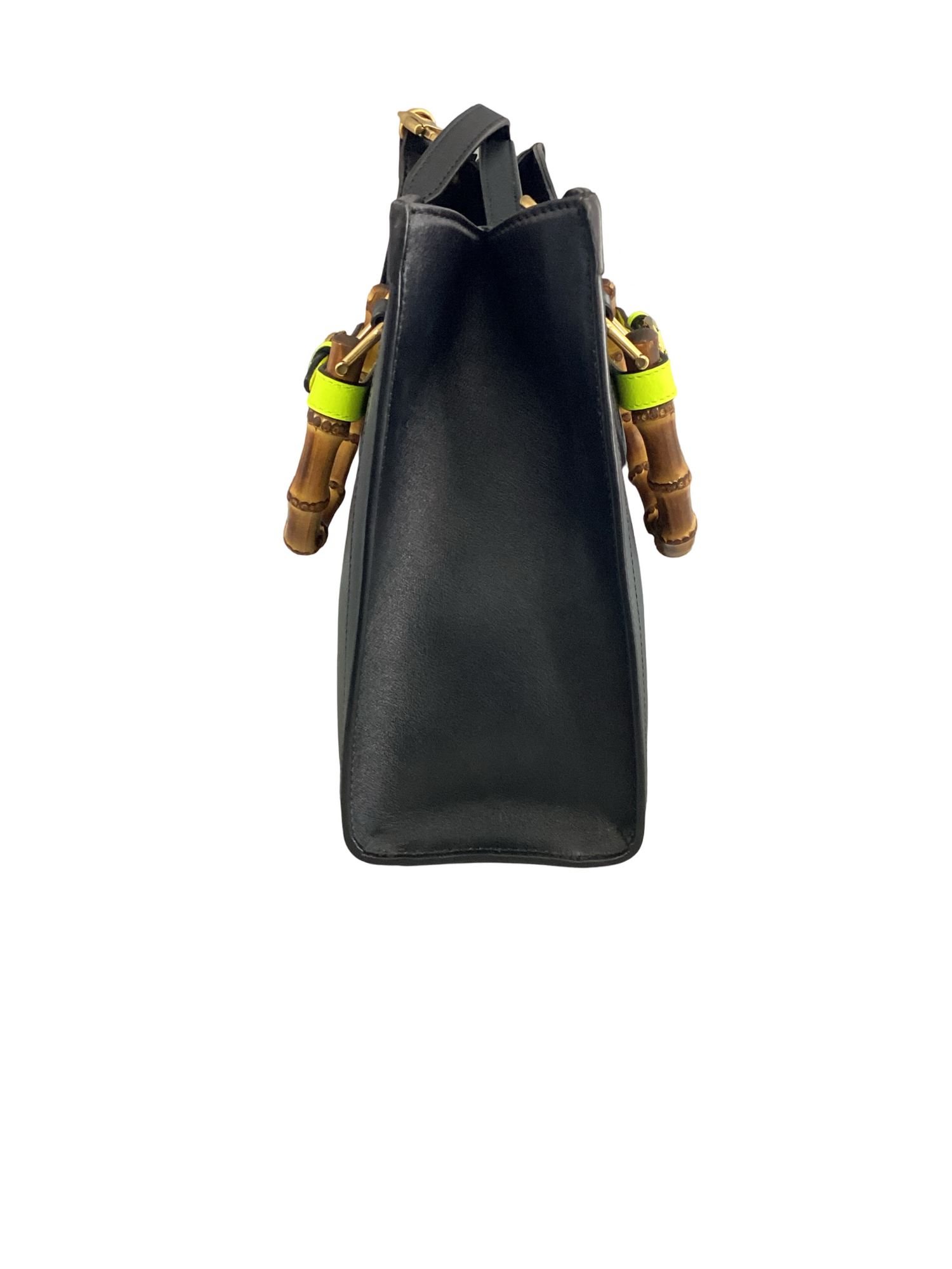 Gucci Black Leather Diana Bamboo Small Tote Bag