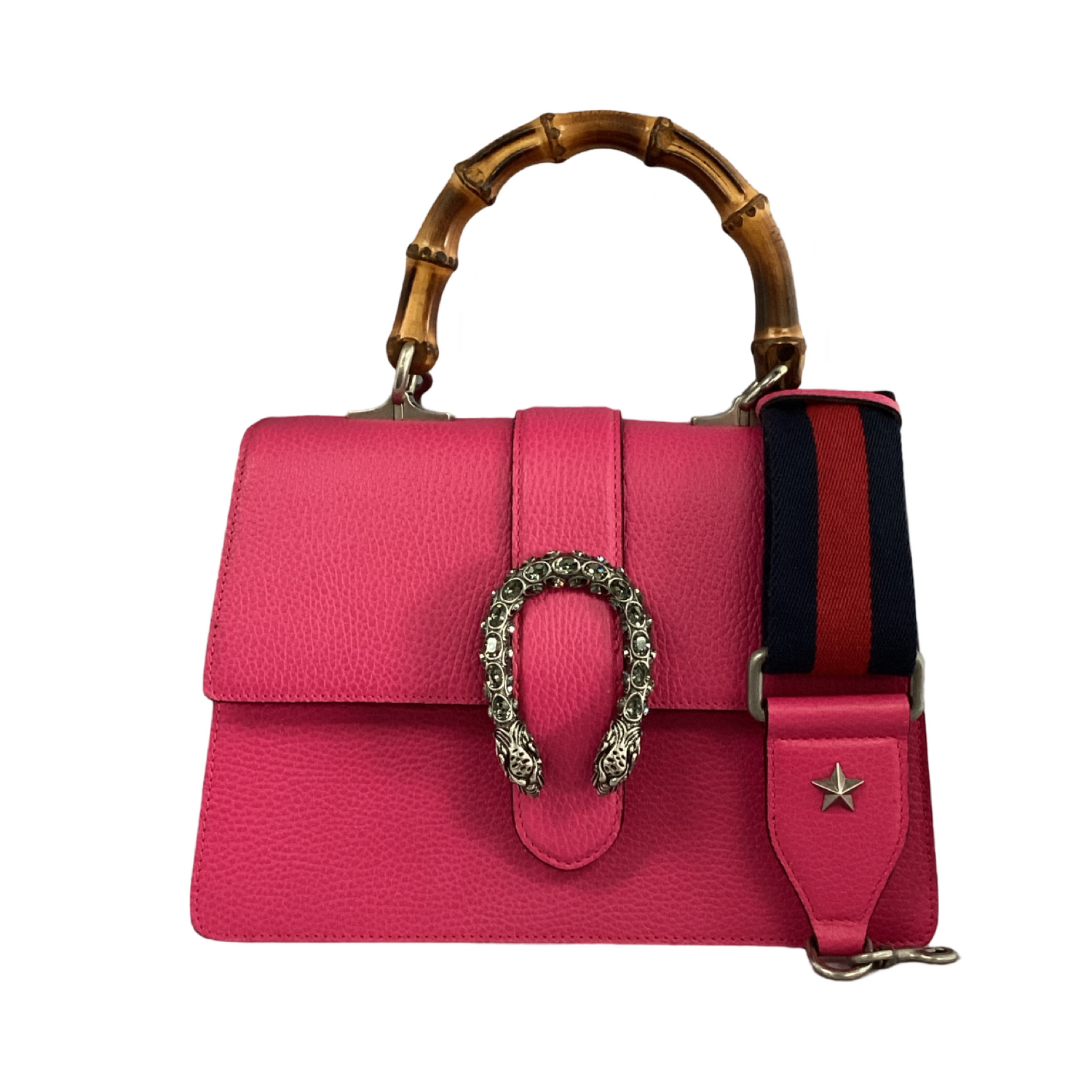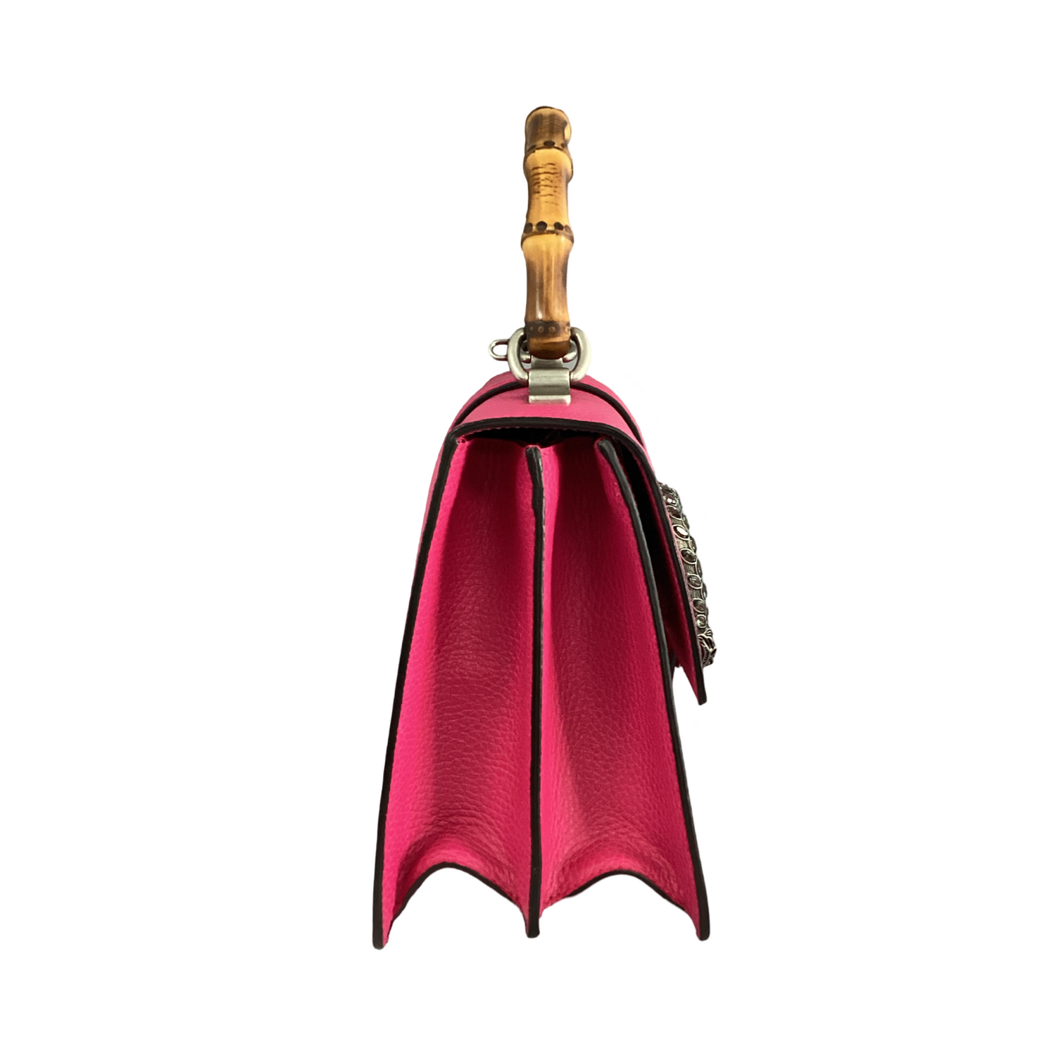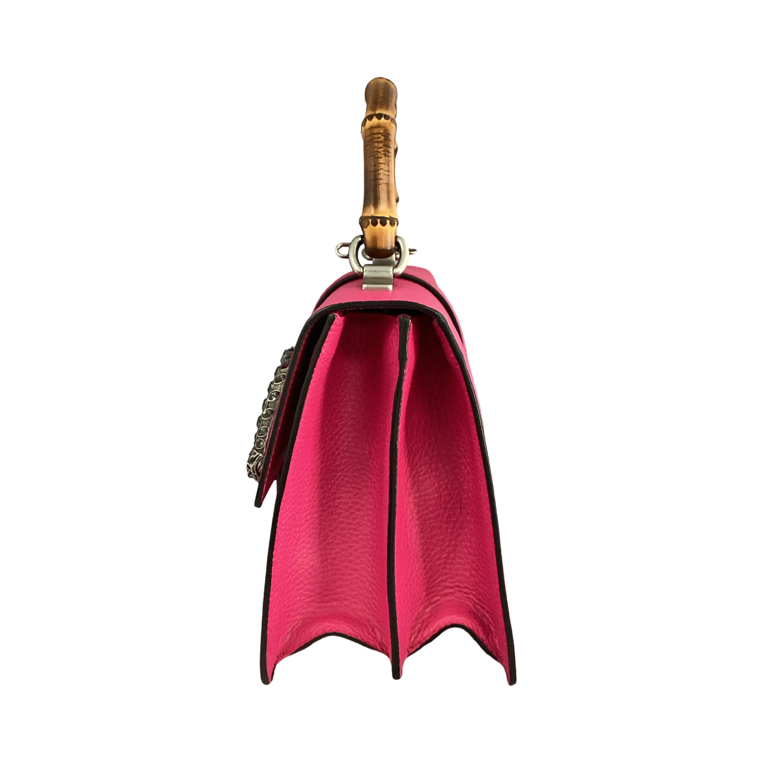 Gucci Pink Dollar Calfskin Crystal Web Med Dionysus Bamboo Top Handle