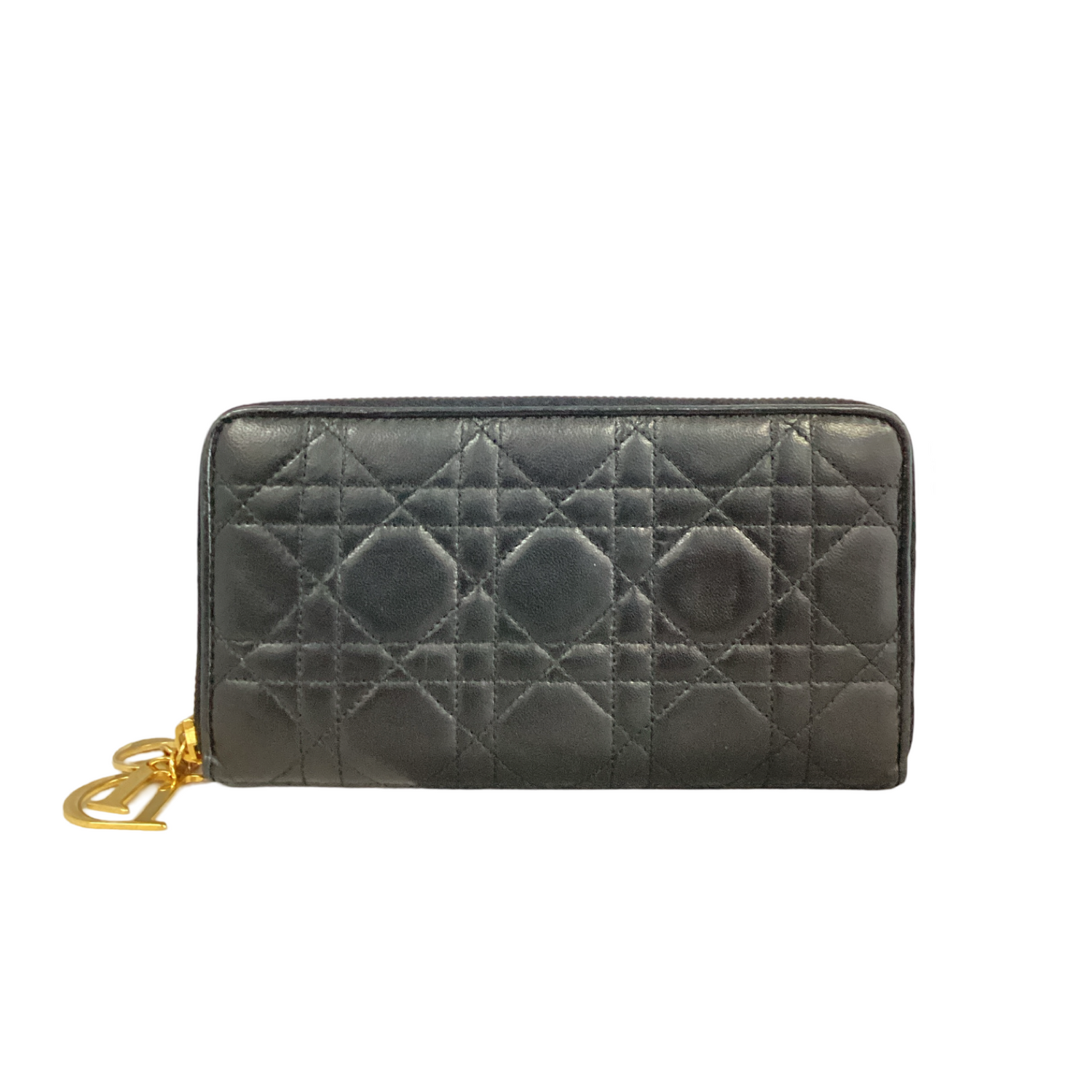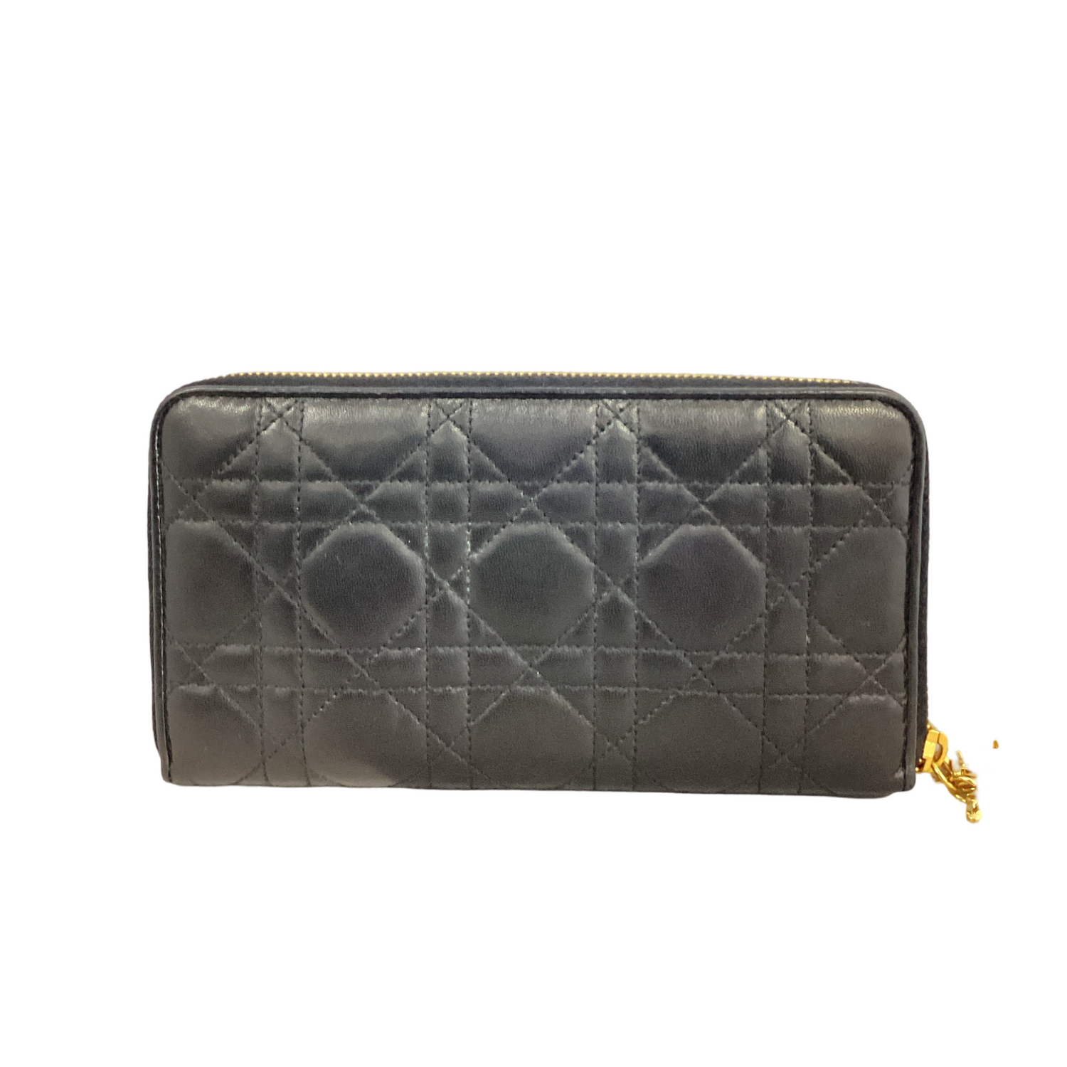 Lady Dior Black Cannage Leather Zip Around Wallet