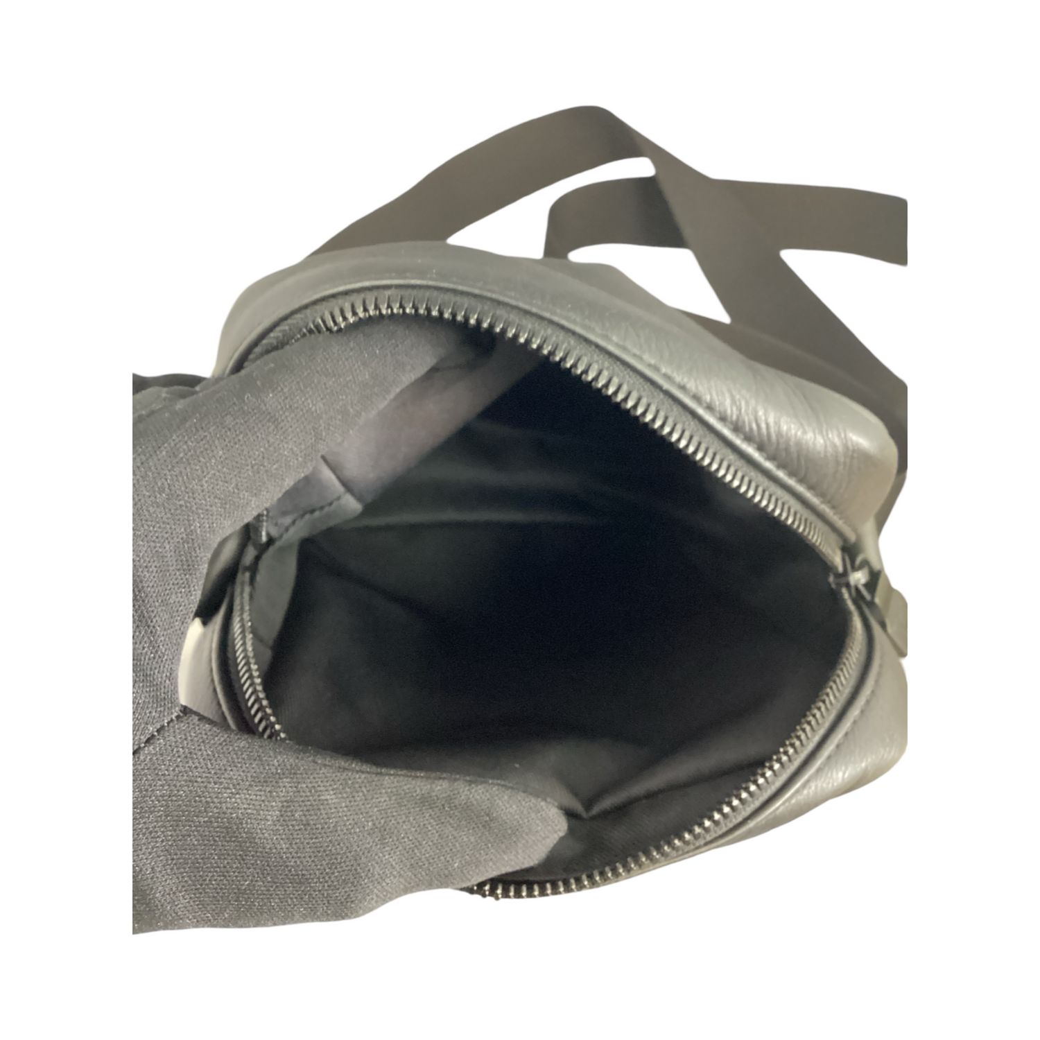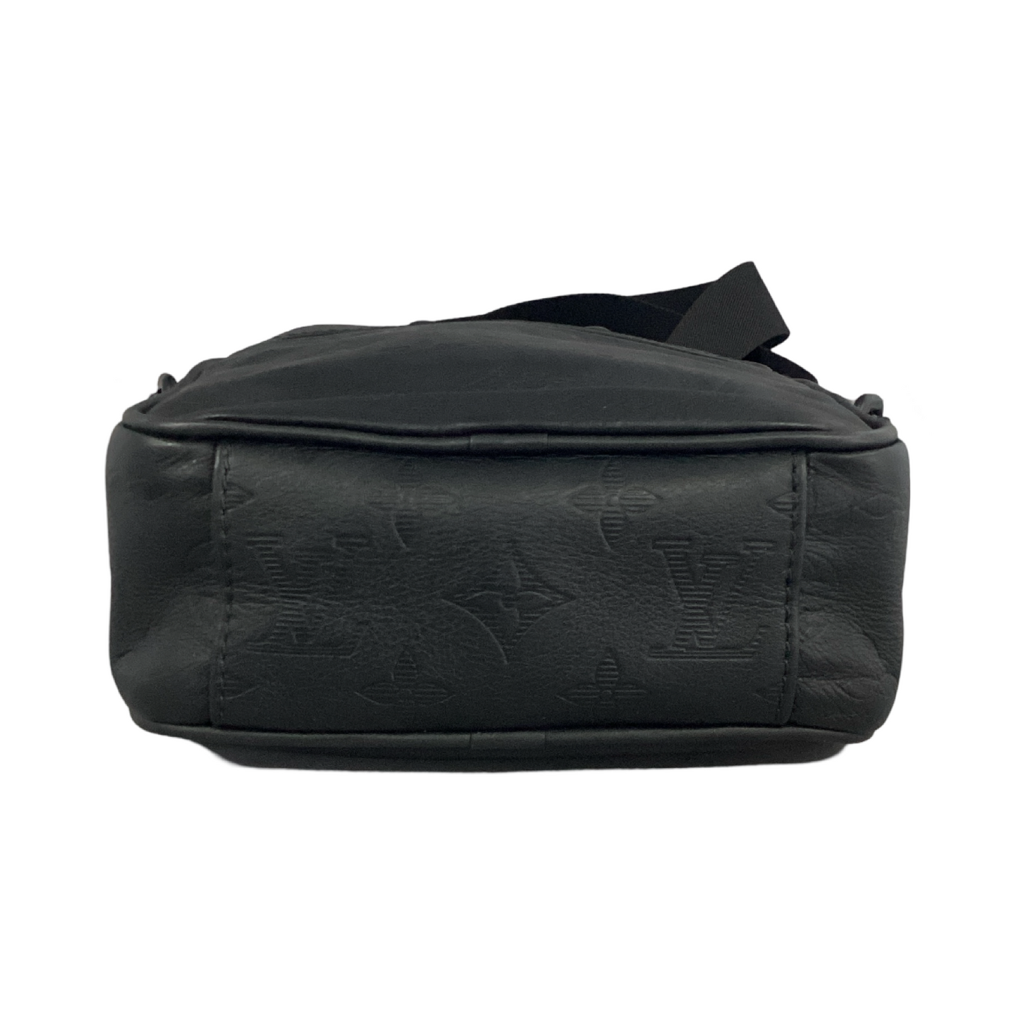 Louis Vuitton Danube PM Shadow Black, with black toned hardware, crafted of a "tone on tone" embossed black leather throughout the signature Louis Vuitton monogram, a front slip pocket, an adjustable nylon shoulder strap, smooth black leather trim, and top zipper closure. Interior features a spacious black fabric interior with a patch pocket.