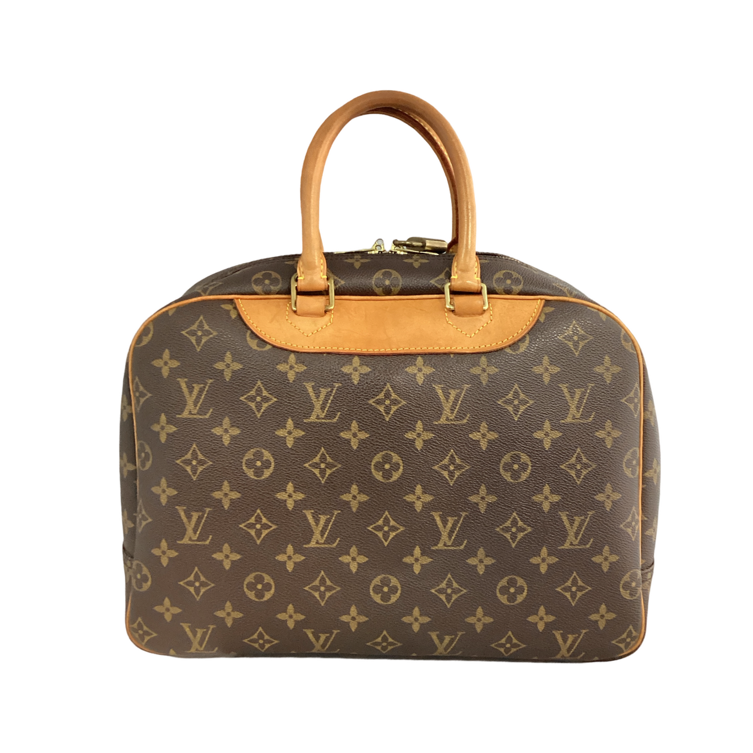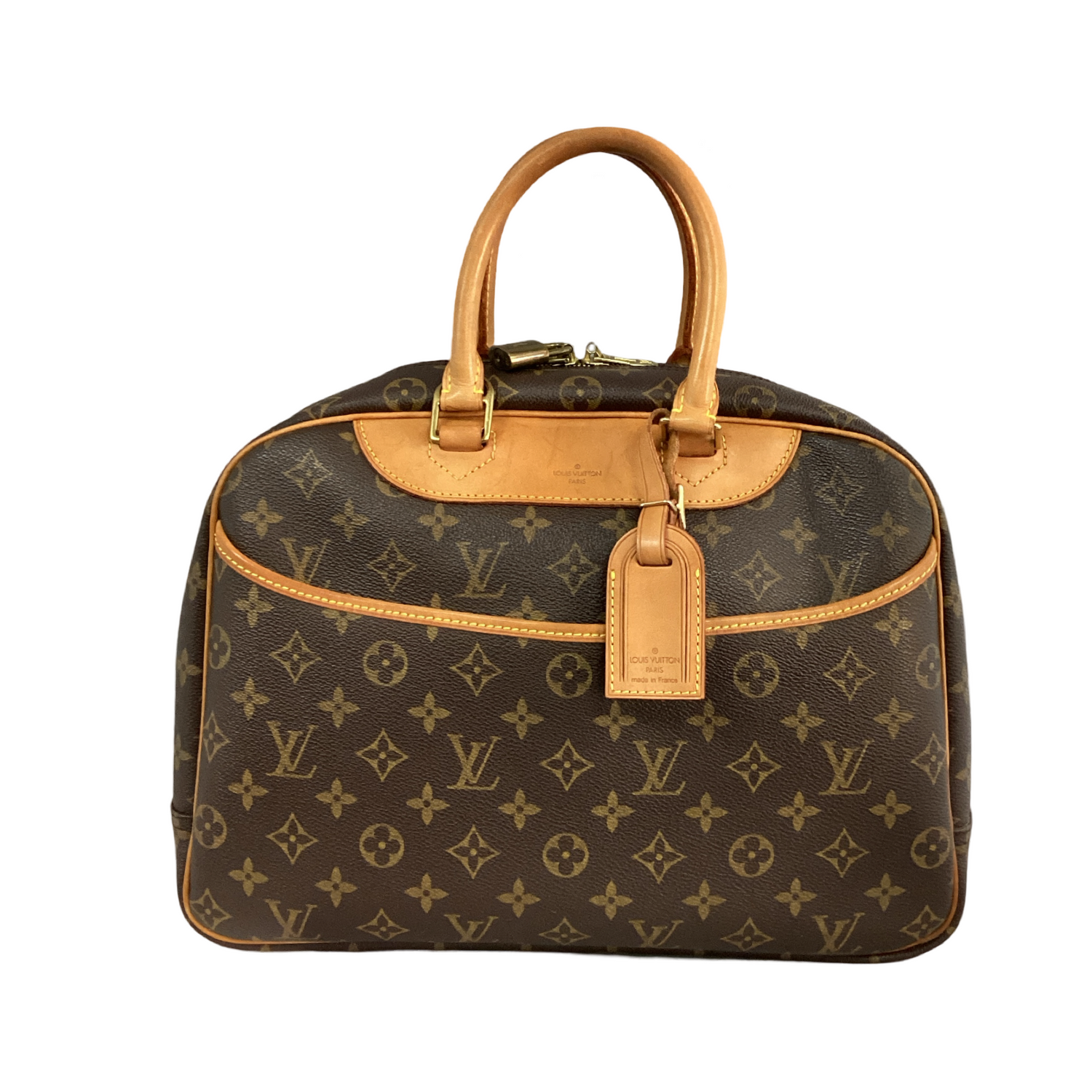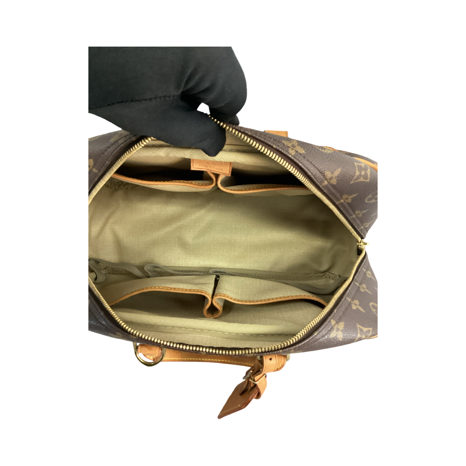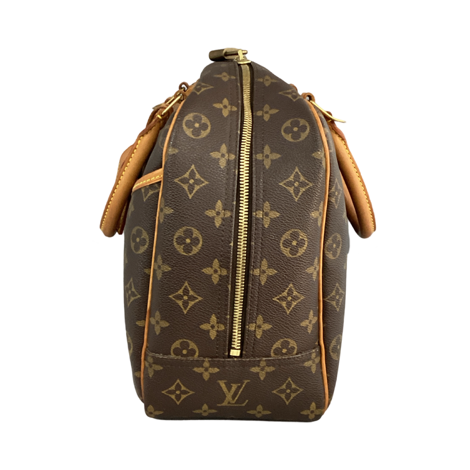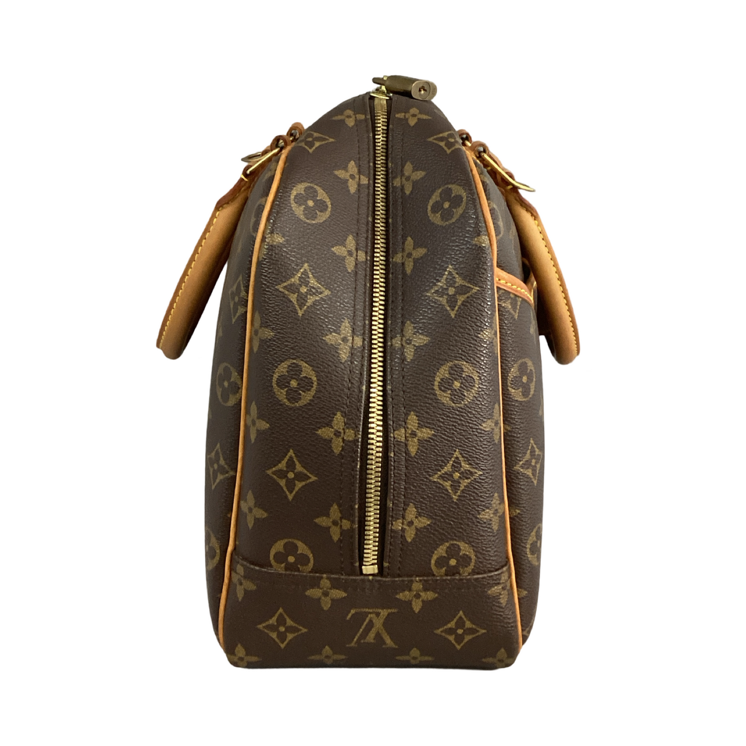 Louis Vuitton-Vintage Monogram Deauville finely crafted of classic Louis Vuitton monogram coated canvas in brown, full front exterior pocket, vachetta cowhide leather trim and double wrap-around zipper closure. Interior features a sand-colored coated canvas interior with patch pockets and elastic bands.