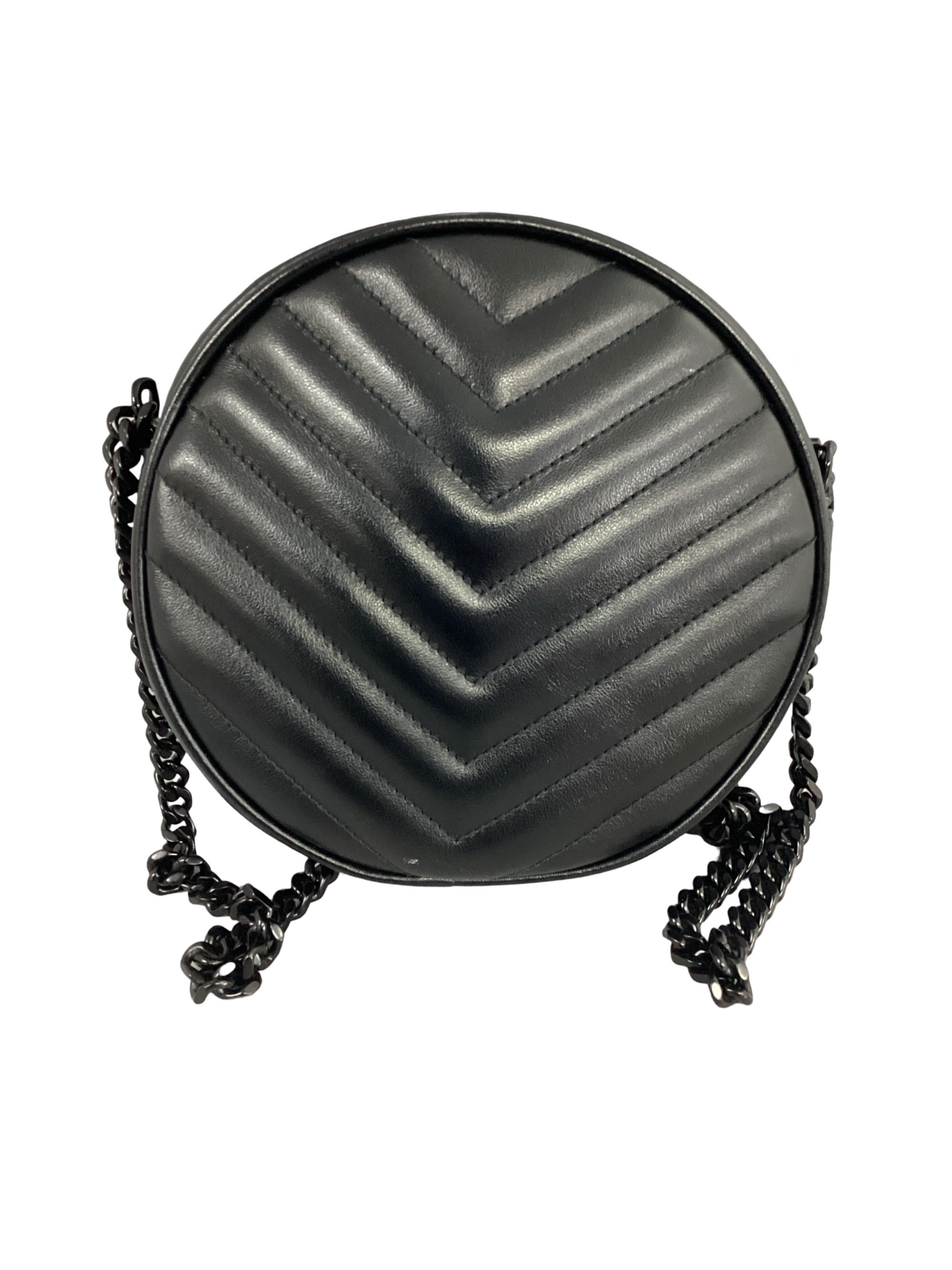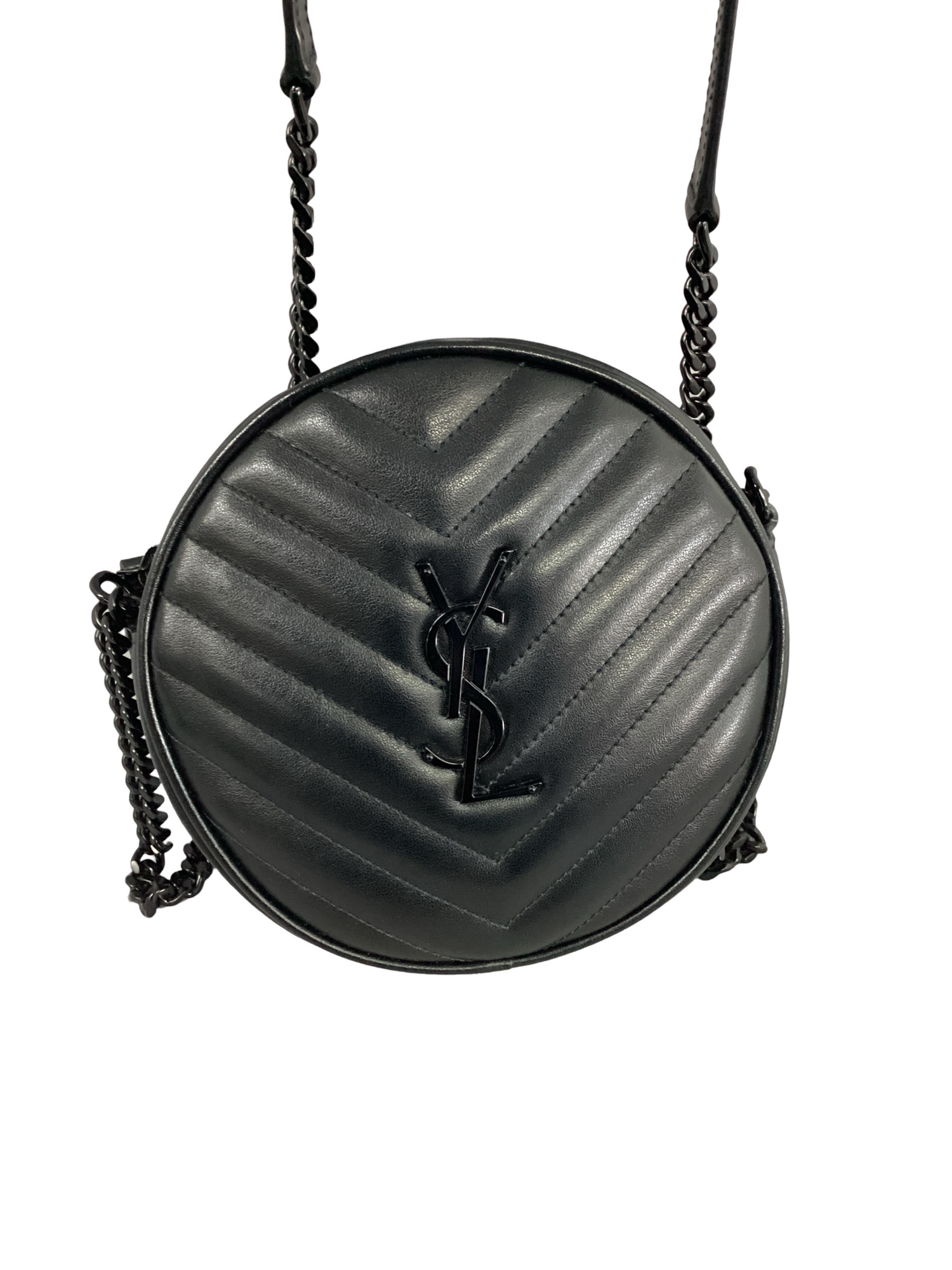 Yves Saint Laurent (YSL) Black Chevron Quilted Vinyl Round Camera Bag