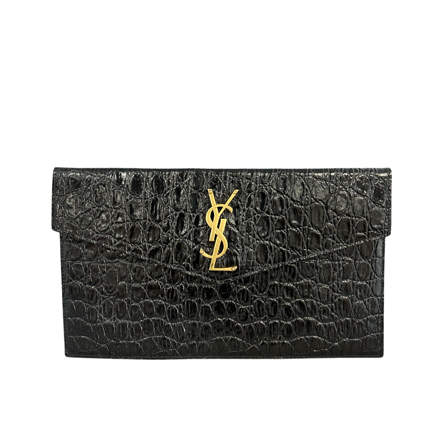 Yves Saint Laurent (YSL) Uptown Cocco Babilas Nero Pouch Medium
